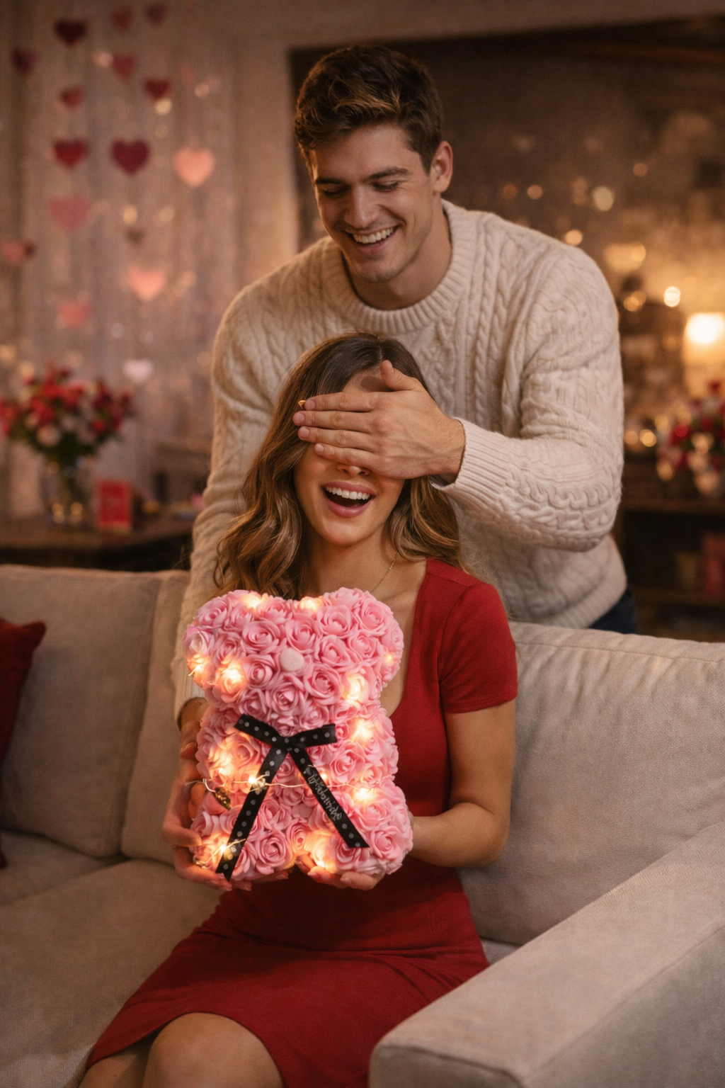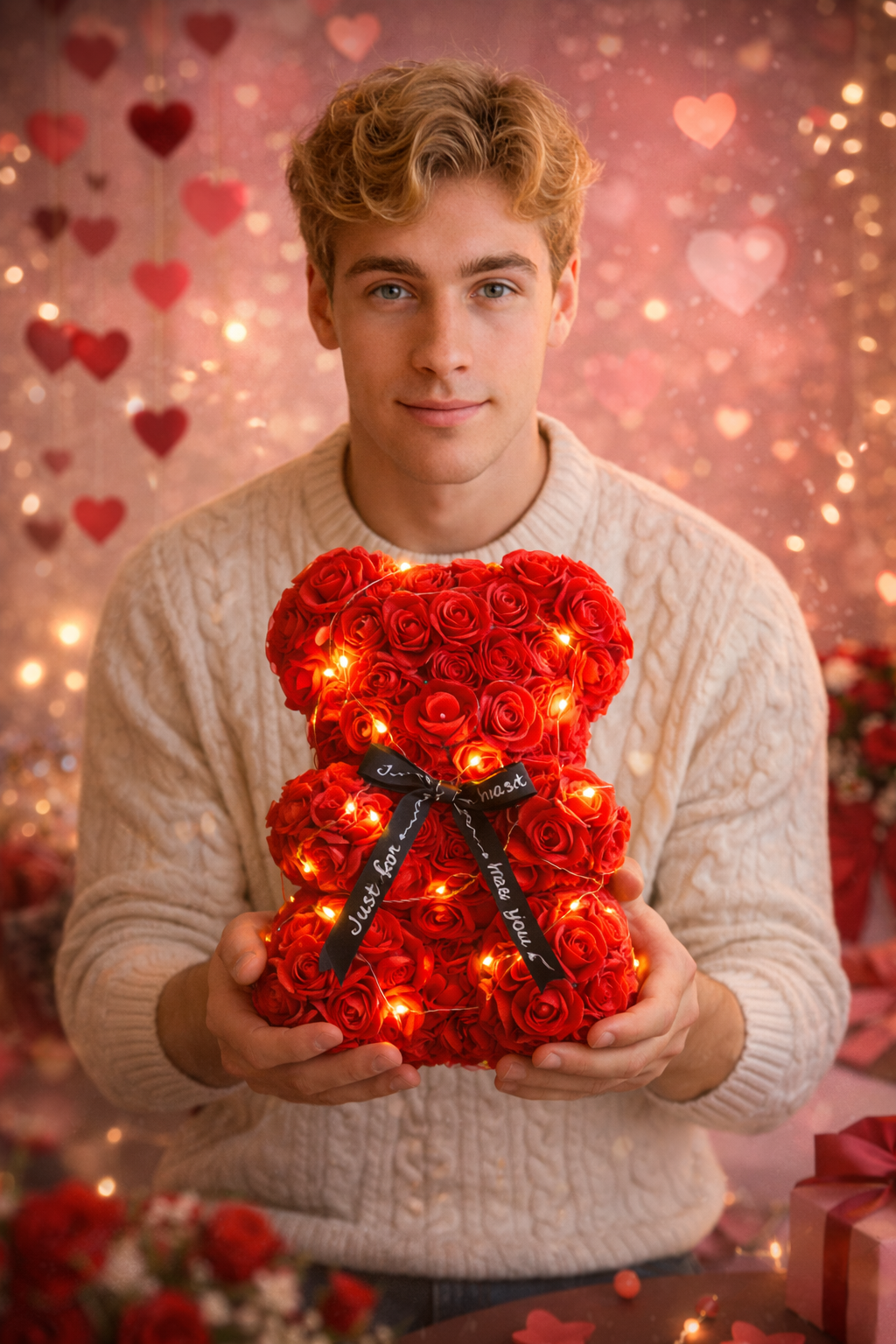 An adorable teddy bear shape paired with heart-rose details makes this gift both visually stunning and emotionally unforgettable.